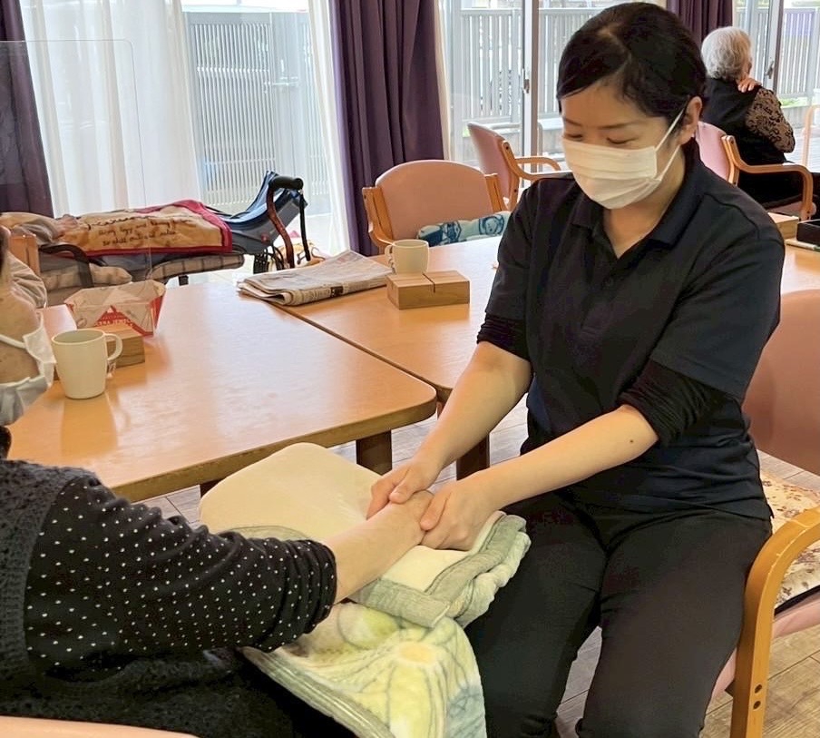 作業療法士が行うハンドマッサージ(昨年の様子)