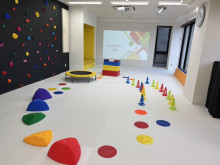 カラーボールやトランポリン、鉄棒、ロッククライミングなどを用意するほか、年齢・好きなもの・鍛えたい感覚などから、児童に合ったプログラムを生成するデジタル運動コンテンツ「DEA2000」を導入。ゲーム感覚で運動を楽しめるように支援するという。