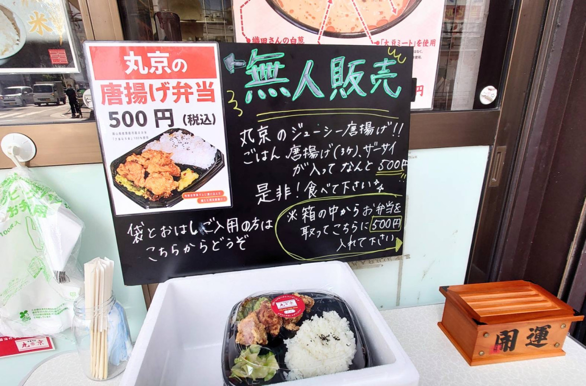 JR京橋駅から徒歩5分の国道1号線沿いにある中華そば店「丸京」(大阪市都島区東野田4)が11月6日、弁当の無人販売を始めた。